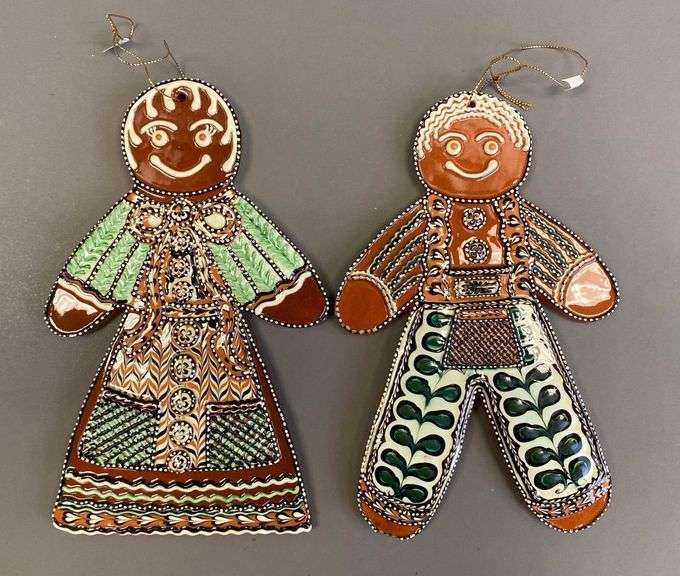 Includes gingerbread man and gingerbread woman, Makers mark on backs, Largest measures 8 x 5 x 1/2in.