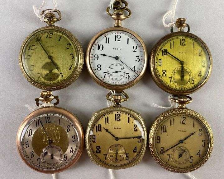 LOT 394 - Group of 6 Elgin Gold Filled Open Face Pocket Watches