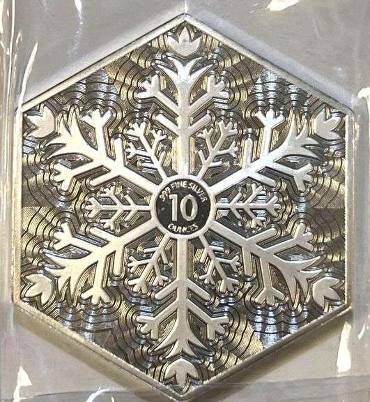LOT 50 - Christmas Snowflake 10oz .999 Fine Silver Bar Sealed