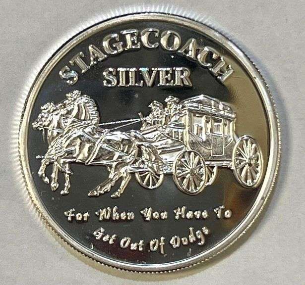 LOT 141 - Super Cool Stagecoach Silver 1oz .999 Fine Silver Round with 1/4 oz Divisible