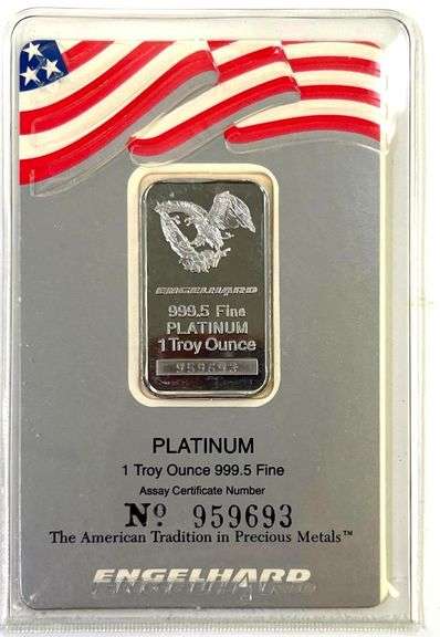 LOT 427 - Engelhard 1 oz .9995 Fine Platinum Bar in Assay Card