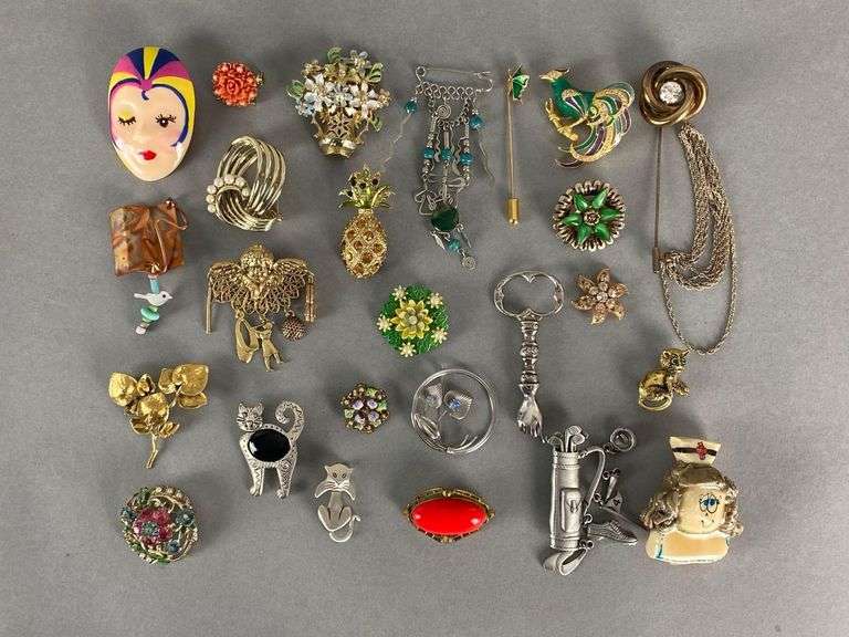 LOT 11E - Group of 20+ Costume Jewelry Pins and Brooches