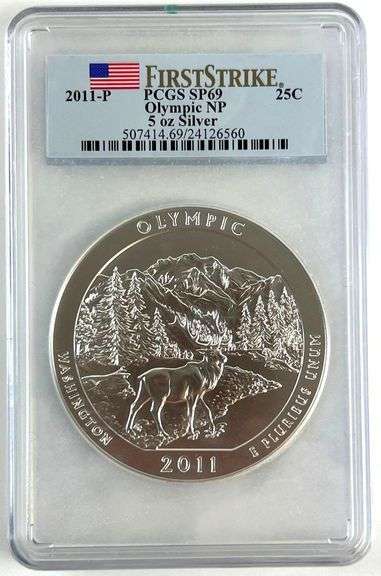 LOT 290 - 2011 P America the Beautiful 5 oz Silver OLYMPIC NP PCGS SP69 First Strike
