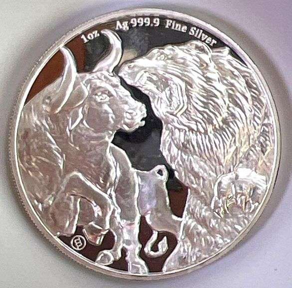 LOT 77 - 2022 Tokelau Bears and Bulls Proof Like 1 oz .9999 Fine Silver Round