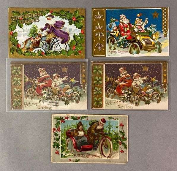 LOT 627 - Posrcards - Embossed Santas on Motorcycles