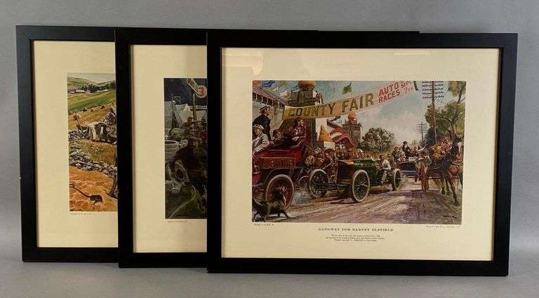 Includes Gangway for Barney Oldfield, The Brighton 24 Hour, and The Glidden Tour of 1907, Frames measures 20 1/2 x 25 1/2 inches.