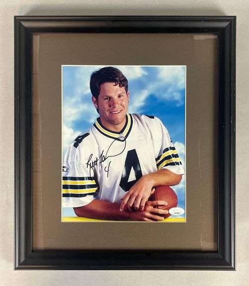 Autographed Brett Favre 4, with JSA COA, Frame Measures 14 X 16
