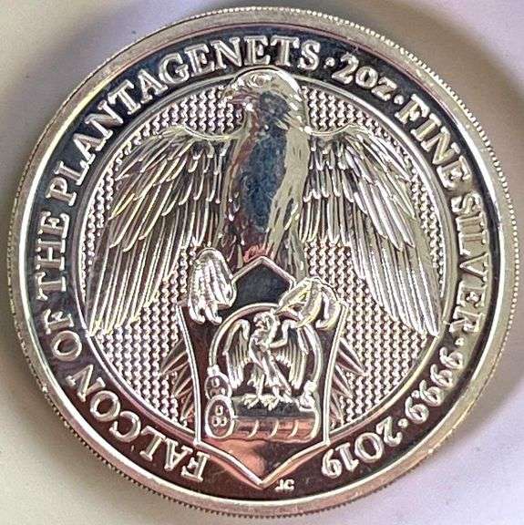 LOT 102 - 2019 Queen's Beast Falcon of the Plantagenets 2 oz .9999 Fine High Relief Silver Coin
