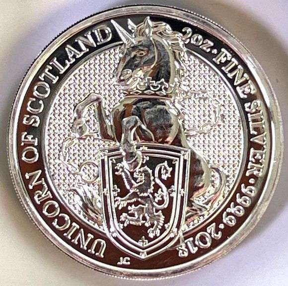 LOT 750 - 2018 Queen's Beast Unicorn of Scotland 2 oz .9999 Fine High Relief Silver Coin