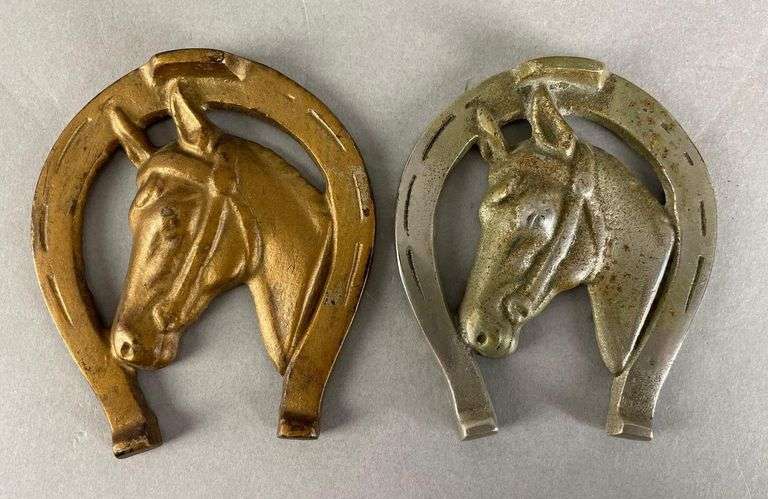 LOT 23 - Group of 2 Metal Advertising Horseshoe Paperweights