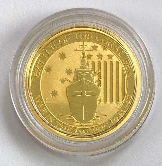 LOT 302 - 2014 $15 Australia War in the Pacific Battle of The Coral Sea 1/10thoz. 9999 Fine Gold