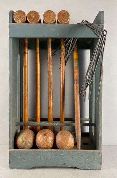 Includes 4 mallets, 5 balls, 1 stake, and wickets. Overall measures 26 x 15 x 8 1/2 inches