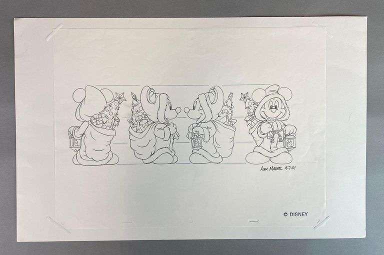 Artists signature on bottom right corner, Matting measures 14 x 22 inches, Drawing measures 12 1/2 x 17 inches.