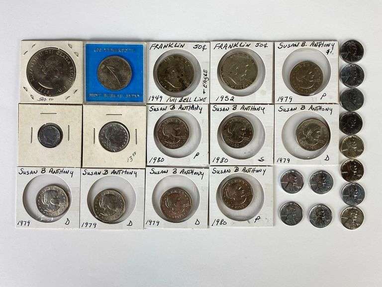 Includes Steel Pennies, Susan B Anthony dollars, 1965 Churchill/Elizabeth II coin, and more.