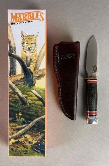 With original box, Gladstone Michigan, Black Micarta/Aluminum, Box measures 11 1/4 x 3 x 2 inches, Knife measures 7 1/2 inches long, Blade measure 3 1/2 inches long.