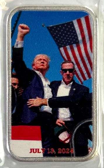 LOT 164 - Donald Trump"Fight Color July 13th Assassination .999 Fine Silver Bar Sealed