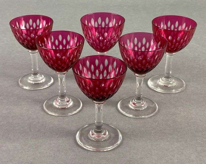 LOT 1116 - Group of 6 Cranberry Cut to Clear Paris Cut Cordial Glasses