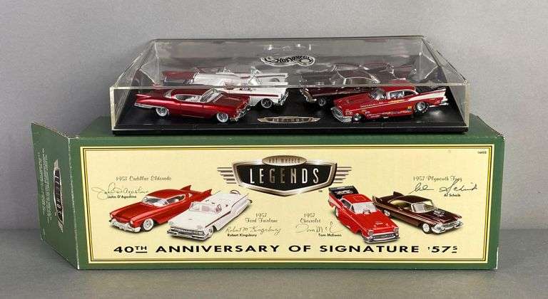 like new in original packaging, 40th anniversary, signature 57s, includes Cadillac Eldorado Starfire, Ford Fairlane, Plymouth fury and chevy