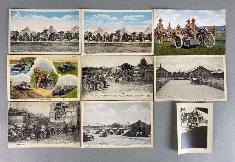 LOT 144 - Group of 8 Military Motorcycle Postcards and More