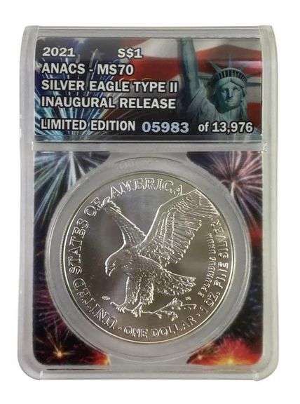 2021 ANACS Graded MS 70 American Silver Eagle 1 oz. Fine Silver Dollar Inaugural Release