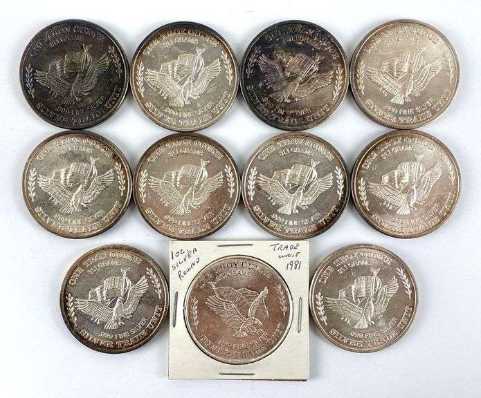 Group of (11) 1981 US San Francisco Assay Office Trade Unit 1oz .999 Fine Silver Rounds