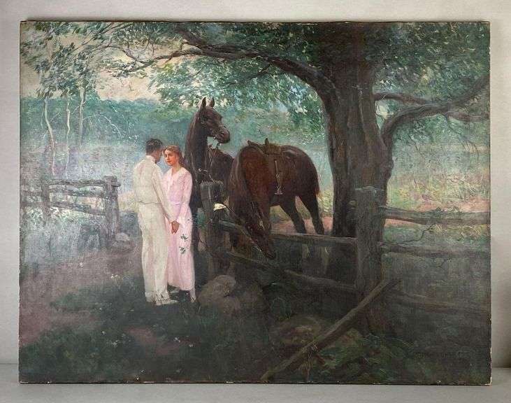 Artists signature on bottom right corner, Hile in canvas just left if cent, Canvas measures 30 x 39 inches.