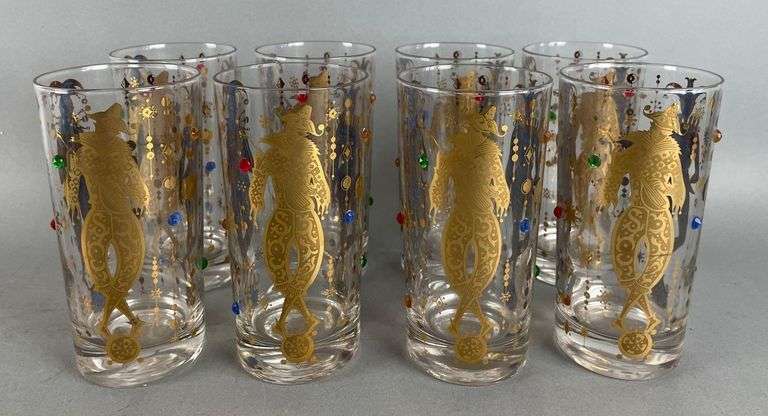 LOT 27 - Set of 8 Vintage Culver Jeweled Jester Mardi Gras Glasses