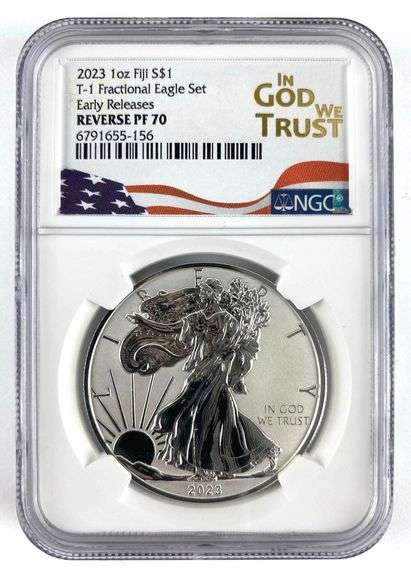 2023 In God We Trust Early Release NGC Graded Reverse PF70 American Silver Eagle 1 oz Fiji .999 Fine Silver