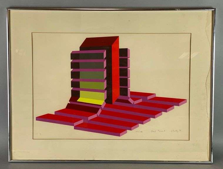 Artists signature on bottom right corner, Limited Edition No. 132/150, Moisture damage along right side of matting, Some bruises in glass, Frame measures 24 1/4 x 32 1/4 inches, Lithograph measures 17 x 25 inches.