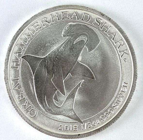 LOT 32 - 2015 Australia $0.50 Great Hammerhead Shark 1/2 oz .999 Fine Silver Coin