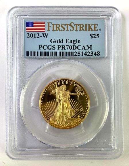 LOT 411 - 2012 W PCGS Graded PR 70 FS DCAM $25 American Gold Eagle 1/2 oz Fine Gold