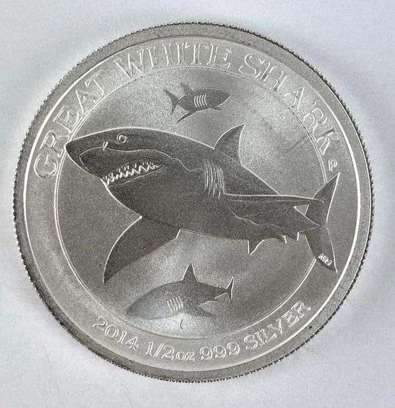 LOT 293 - 2014 Australia $0.50 Great White Shark 1/2 oz .999 Fine Silver Round