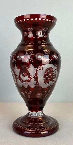 LOT 5 - Egermann Bohemian Ruby Etched To Clear Glass Vase