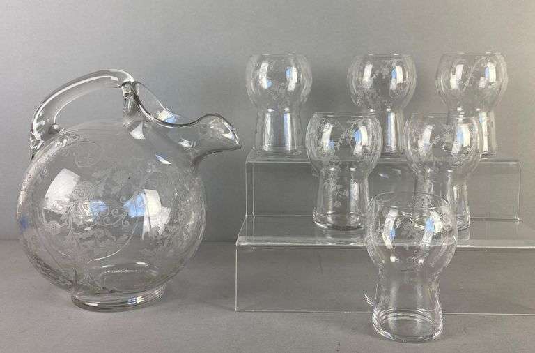 LOT 481 - Set of Cambridge Etched Elaine Crystal Drinkware