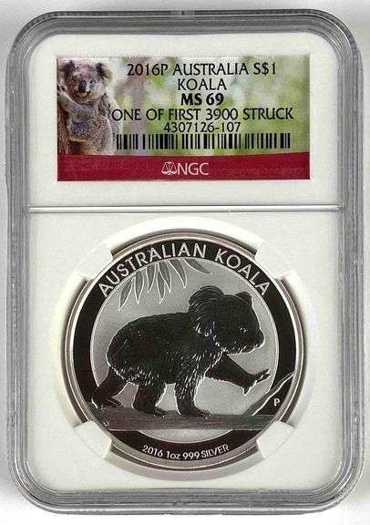LOT 19 - NGC Graded 3016-P Australia $1 Koala 1oz .999 Fine Silver MS69