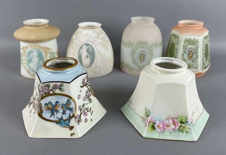 LOT 833 - Group of Antique Painted Glass Lamp Shades