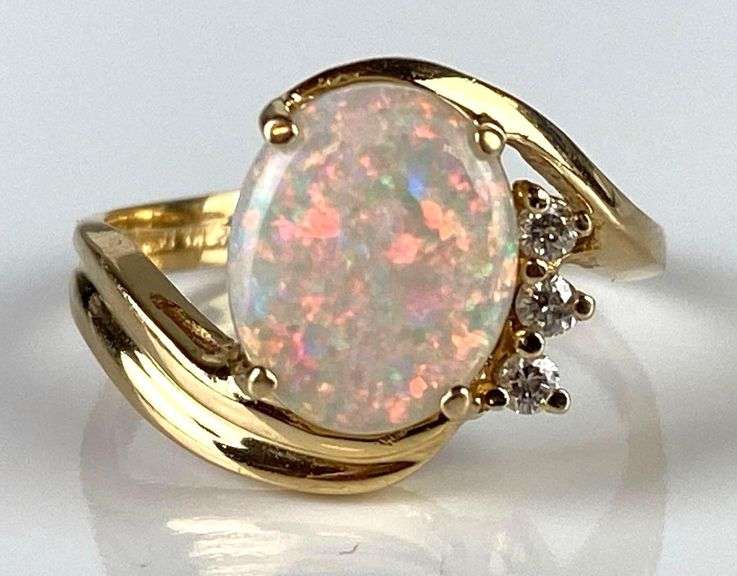 LOT 344 - 14K Gold Opal and Diamond Ring