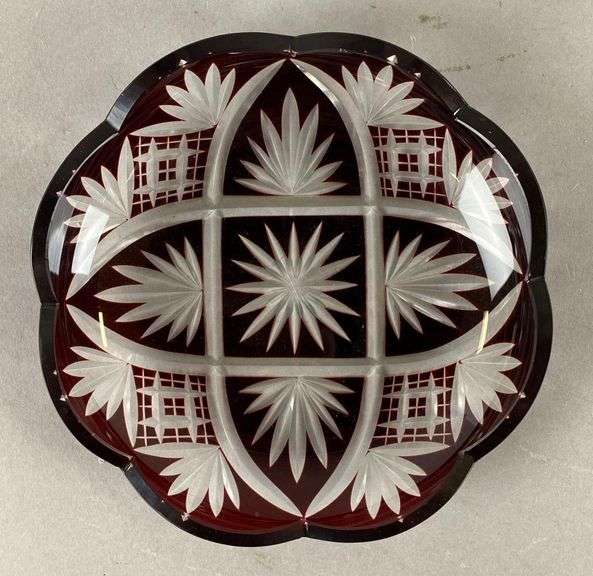 LOT 39 - Antique Ruby Red Cut To Clear Glass Plate