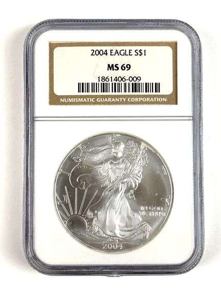 NGC Graded 2004 US $1 American Silver Eagle Silver Dollar MS69