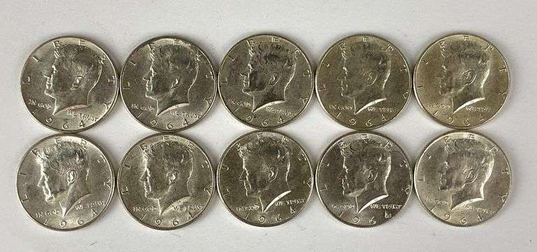LOT 448 - Group of 10 1964 Kennedy Silver Half Dollars