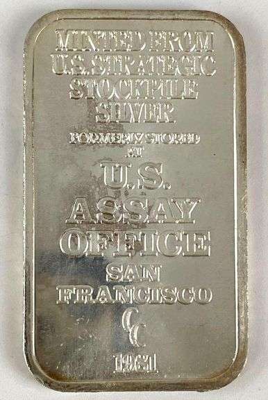 LOT 42 - 1981 US Assay Office San Francisco 1 oz .999 Fine Silver Ingot/ Bar