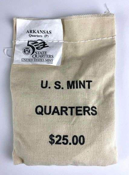 LOT 436H - 1998 P US Mint $25 Canvas Bag of Arkansas Quarters