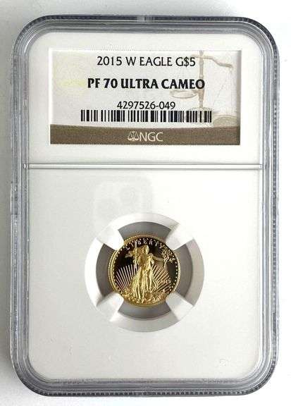 LOT 432 - NGC Graded 2015 W US $5 Gold Eagle 1/10 oz Gold Coin PF 70