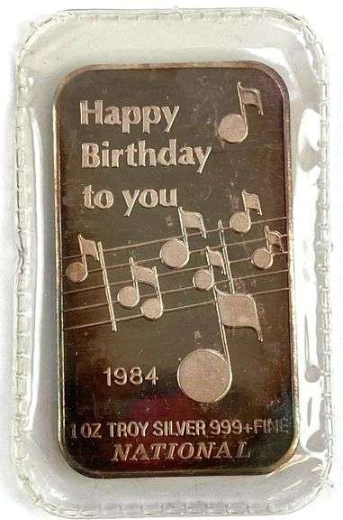 1984 National Happy Birthday 1 oz Troy Silver 999 + Bar