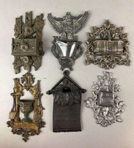 LOT 334 - Group of 6 Cast Iron Match Safes