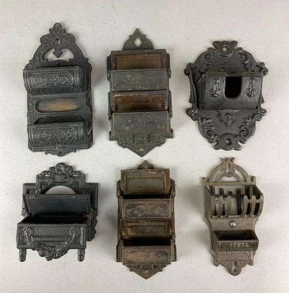 LOT 329 - Group of 6 Antique Cast Iron Match Safes