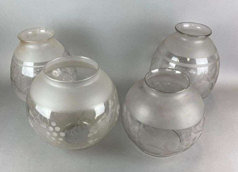 LOT 298 - Group of 4 Etched Floral Motif Globe Lamp Shades