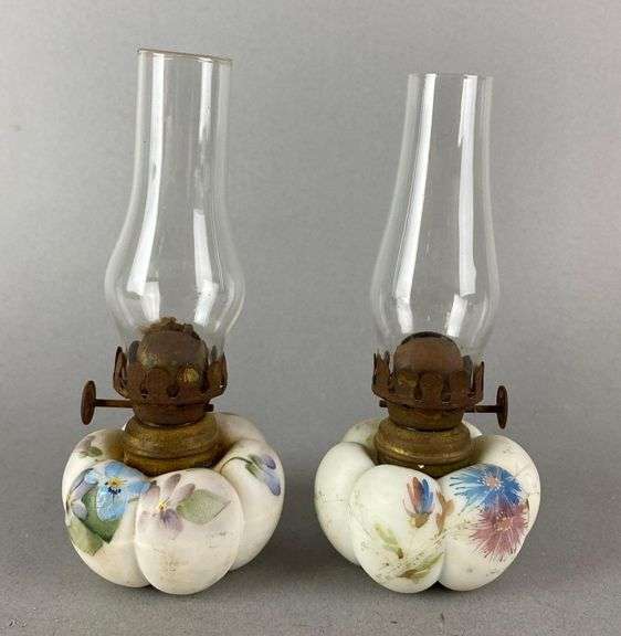LOT 289 - Group of 2 Antique Mount Washington Hand Painted Floral Motif Oil Lamps