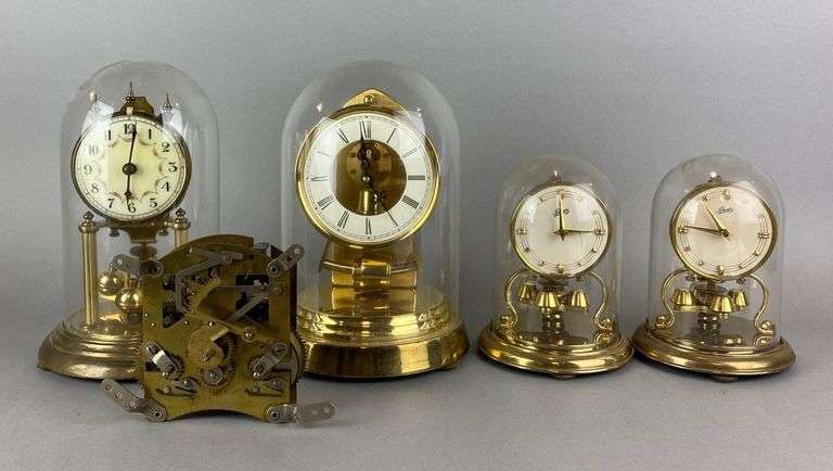 Unknown working conditions. Includes Elgin Clock Division Mechanism, Schlatz, Hall Craft and more. Largest measures 9 1/2 x 6 1/2 x 6 1/2 inches.