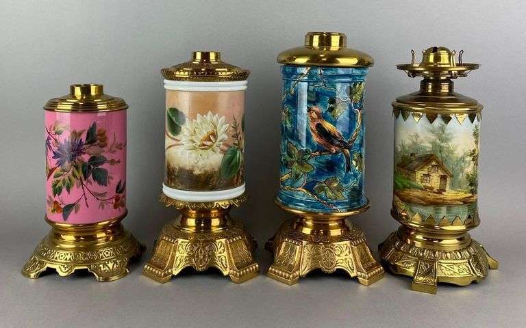 LOT 244 - Group of 4 Assorted Ornate Antique Victorian Hand Painted Oil Lamps